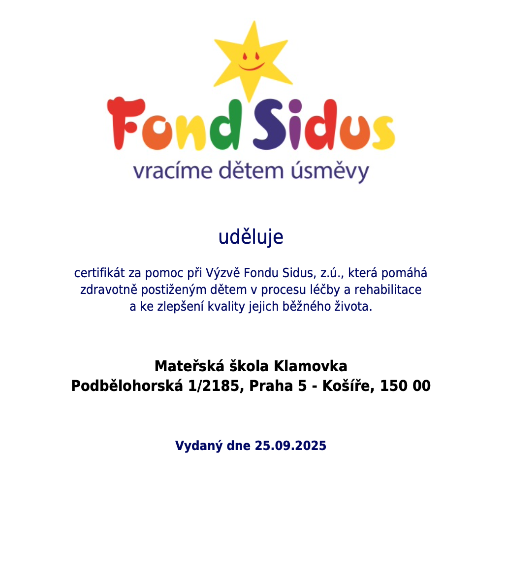 Celý kolektiv školy cítí jako své poslání, aby Vašemu dítěti a Vám bylo v naší škole příjemně. Je pro nás důležitá bezpečnost vašich dětí a jejich příprava do základní školy a do běžného života. Klademe důraz na respektování individualit dítěte a akceptovatelná přání rodičů za předpokladu dodržování předem stanovených pravidel školy. V rámci nadstandartních programů a pohádkovým prostředím školy podporujeme a rozvíjíme nadání dítěte a školní vzdělávací program.