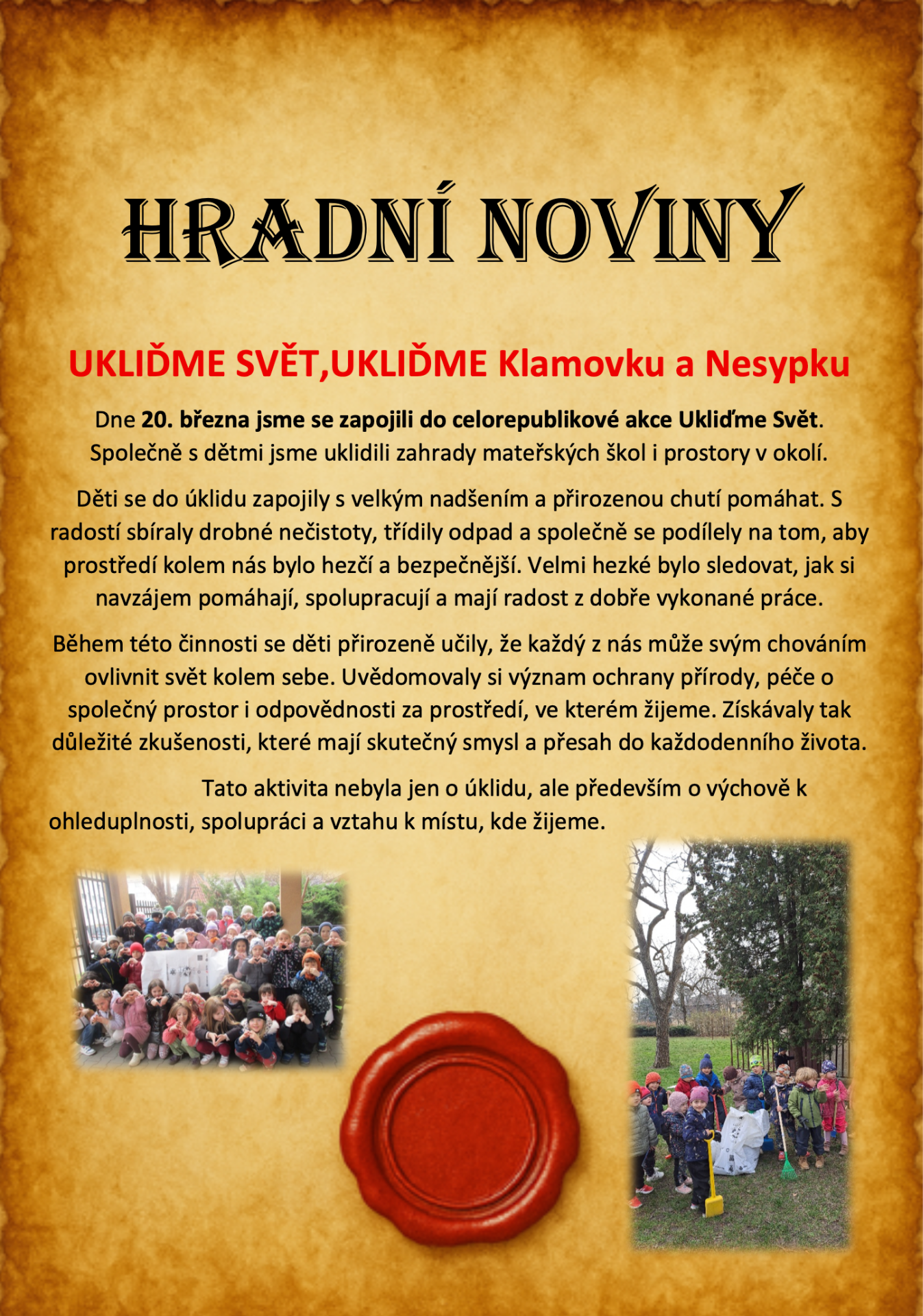 Hradní noviny - Ukliďme svět