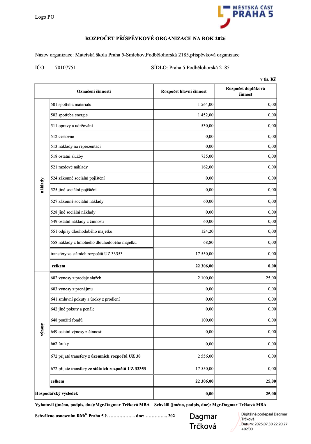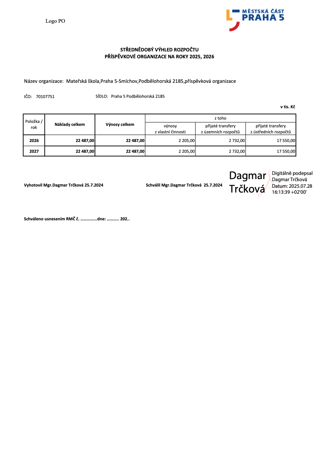 Střednědobý výhled rozpočtu PO na roky 2025,2026